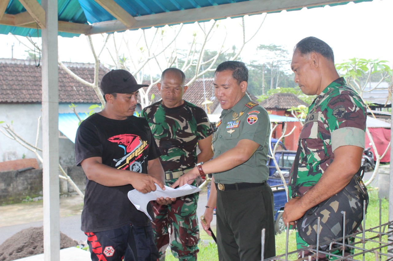 Didampingi Pasiter dan Pasipers, Dandim Bangli dalam kesempatan tersebut mengecek pembuatan bak transit yang dikerjakan langsung oleh anggota Kodim 1626/Bangli bersama warga masyarakat setempat.