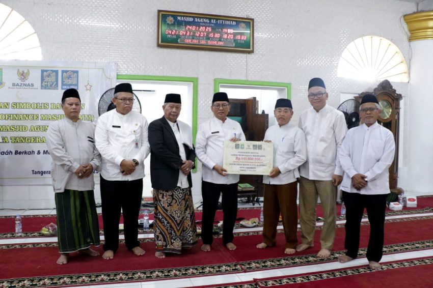 Tangerang- Sekretaris Daerah Kota Tangerang, Herman Suwarman, hadir dalam acara Penyerahan Bantuan Baznas Microfinance Masjid (BMM) untuk Usaha Mikro, Kecil dan Menengah (UMKM) Masjid Agung Al-Ittihad Kota Tangerang, yang berlangsung di Aula Masjid Agung Al-Ittihad Kota Tangerang, Jumat (24/01).