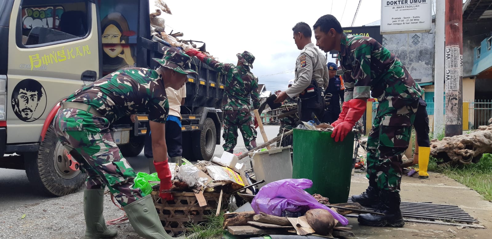 Dalam keterangannya, Dandim 1628/Sumbawa Barat Letkol Inf Octavian Englana Partadimadja menyampaikan bahwa pihaknya telah mengerahkan seluruh personel untuk membantu masyarakat membersihan lumpur dan material sisa banjir, pada Rabu (15/2/2023).