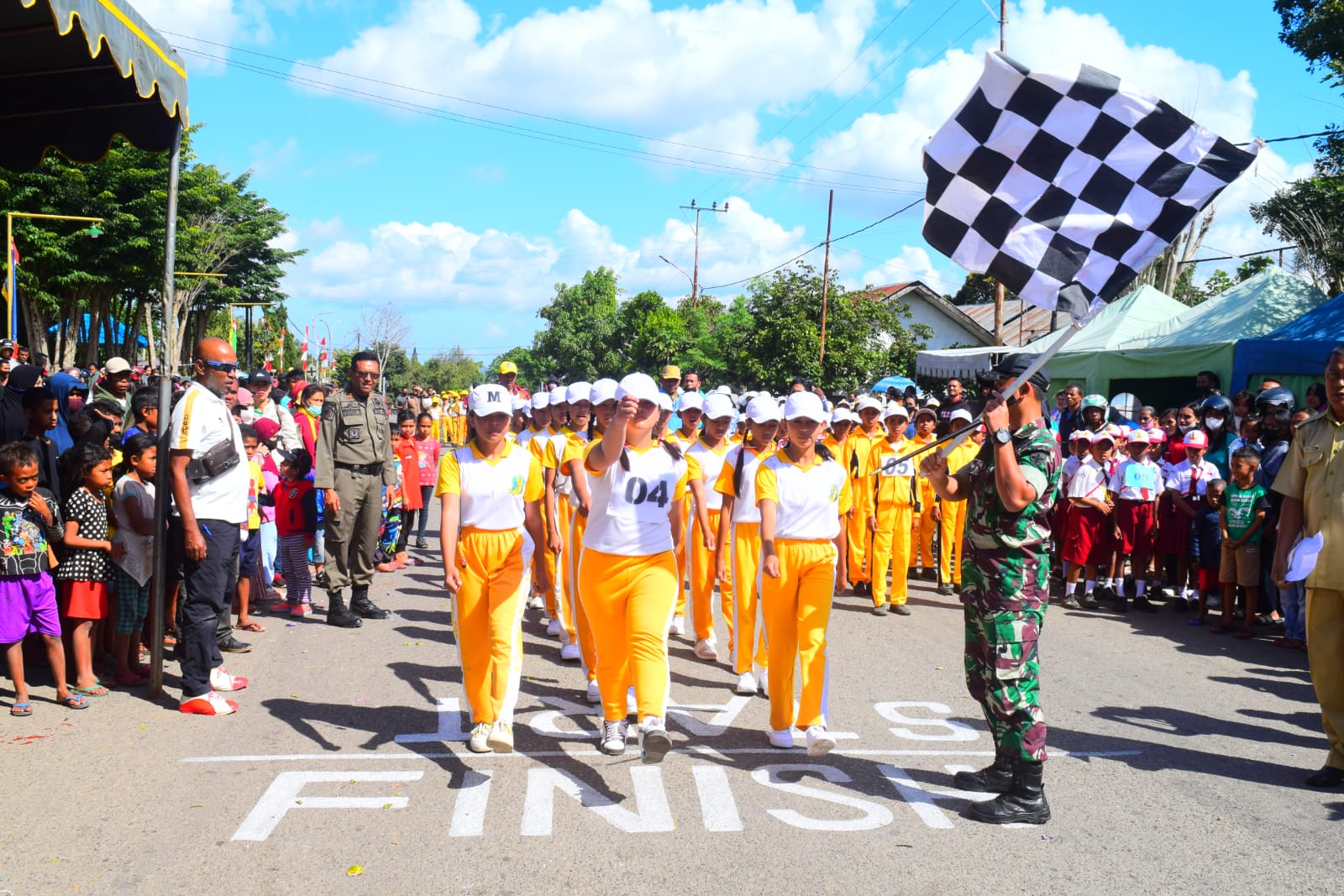 TTS – Dandim 1621/TTS Letkol Arm Roni Hermawan, S.H., M.M., melepas peserta lomba gerak jalan tingkat sekolah dasar (SD) se-Kabupaten TTS dalam rangka memperingati Hari Ulang Tahun (HUT) Proklamasi Kemerdekaan Republik Indonesia (RI) ke-77.