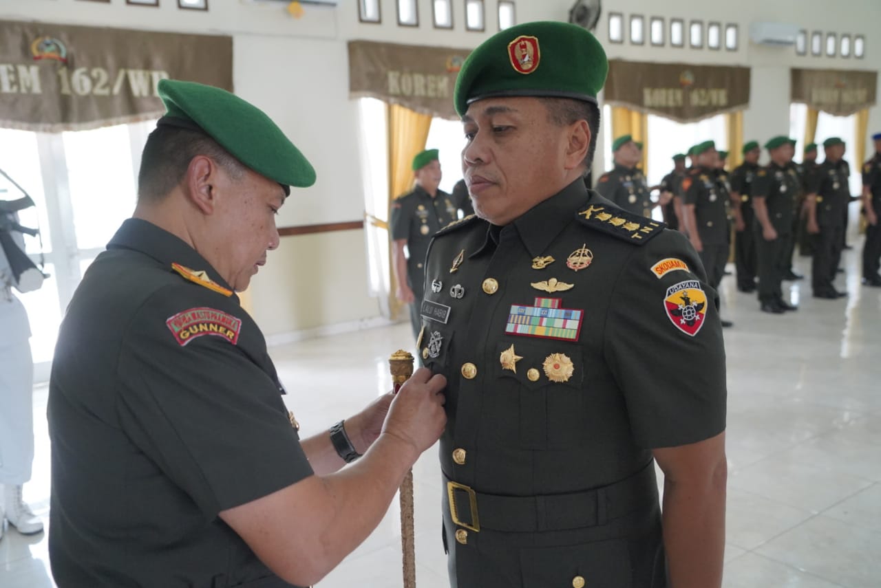 Penyerahan jabatan Kepala Staf Korem (Kasrem) 162/WB dan Serah terima jabatan Kasi Log Kasrem 162/WB, ditandai dengan penciuman Dhuaja Korem 162/WB dan penandatanganan naskah serah terima baik oleh pejabat lama maupun pejabat baru.