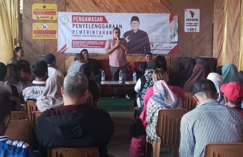 SUKABUMI – Sekretaris Komisi V DPRD Provinsi Jawa Barat dari Fraksi PDI Perjuangan, Haji Muhammad Jaenudin, S.Ag., MH, menggelar kegiatan Sosialisasi Perundang-Undangan (Sosper) dengan fokus pada pengawasan penyelenggaraan pemerintah daerah. Acara digelar di Desa Karang Tengah, Kecamatan Cibadak, Kabupaten Sukabumi, Kamis (4/12/2025).