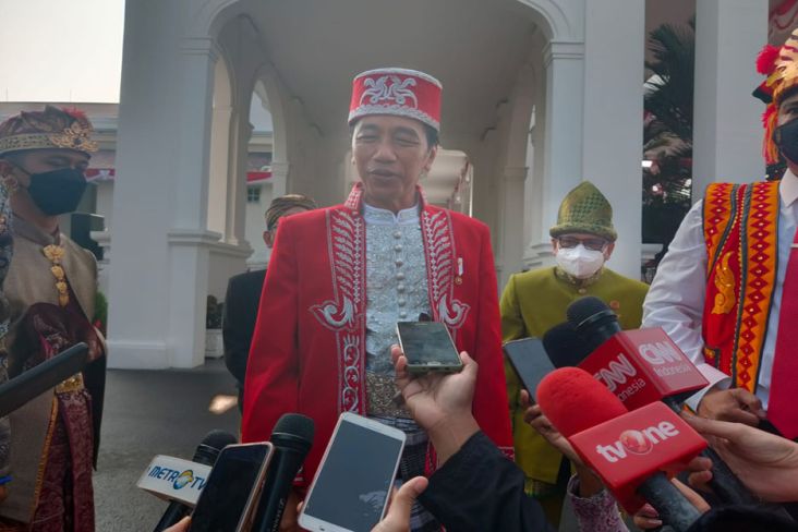 “Ini baju dari Buton, Sulawesi Tenggara,” kata Jokowi di Istana Merdeka, Rabu (18/8/2022).