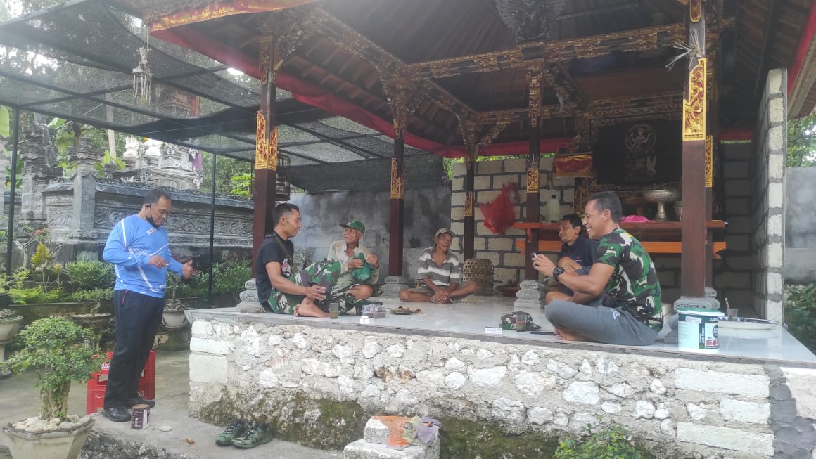 KLUNGKUNG – Keakraban Satgas TMMD Kodim Klungkung bersama masyarakat kembali terlihat, saat personel Satgas TMMD yang dipimpin Pasiter Kodim Klungkung Kapten Inf I Nyoman Wiryanatha menyambangi rumah Perbekel Desa Bunga Mekar I Wayan Yasa, pada Rabu (08/06/2022).