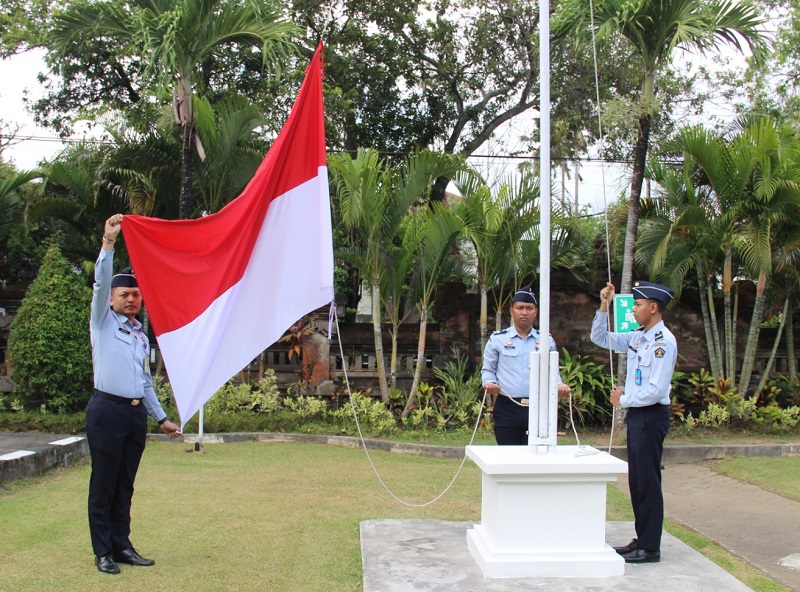 BALI – Kantor Wilayah Kementerian Hukum dan HAM Bali menggelar upacara bendera untuk memperingati Hari Lahir Pancasila tahun 2023, Kamis (01/06/2023) bertempat di Halaman Kantor Wilayah. Adapun tema yang diangkat dalam Hari Lahir Pancasila tahun ini adalah “Gotong Royong Membangun Peradaban dan Pertumbuhan Global”.
