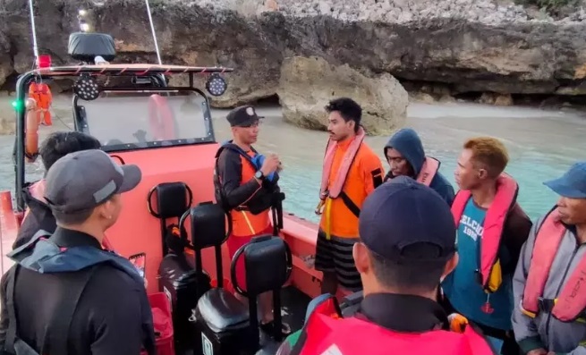 NTT – Tim Rescue Kantor SAR Kupang bersama Unsur SAR Gabungan mengevakuasi 4 (empat) orang nelayan Kupang yang mengalami kebocoran kapal di Perairan Selat Rote NTT.