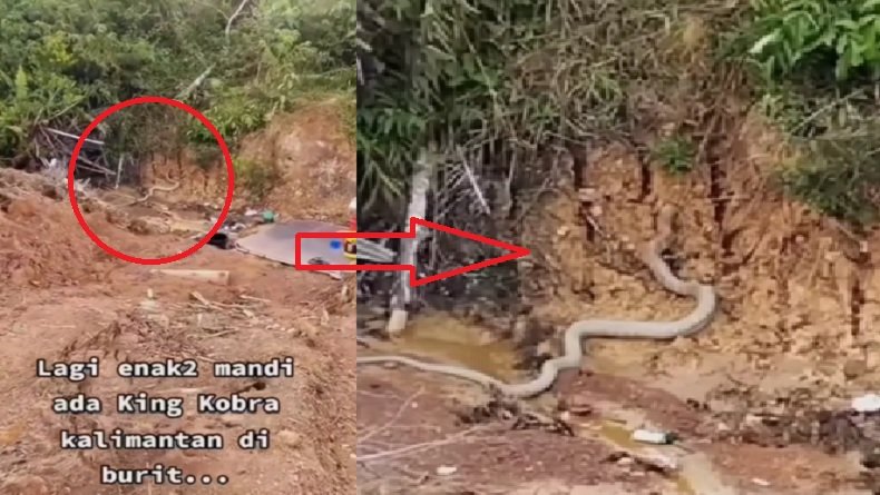“lagi enak2 mandi ada king kobra Kalimantan di burit,” tulis dalam video tersebut.