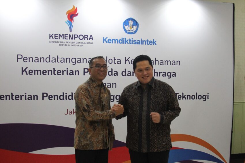 JAKARTA – Kementerian Pemuda dan Olahraga bersama Kementerian Pendidikan Tinggi, Sains, dan Teknologi berkolaborasi memperkuat pengembangan olahraga di lingkungan perguruan tinggi Indonesia.
