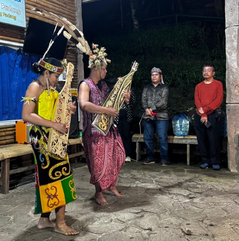 Acara dimulai dengan alunan Sape dari grup SlarasBudaya oleh Ghodiel Sapeq dan Arke Nurdjatni Soedjatno. Petikan instrumen tradisional Dayak itu menghadirkan suasana sakral yang langsung mengikat perhatian para tamu meski panggung telah bergeser ke ruang tertutup.