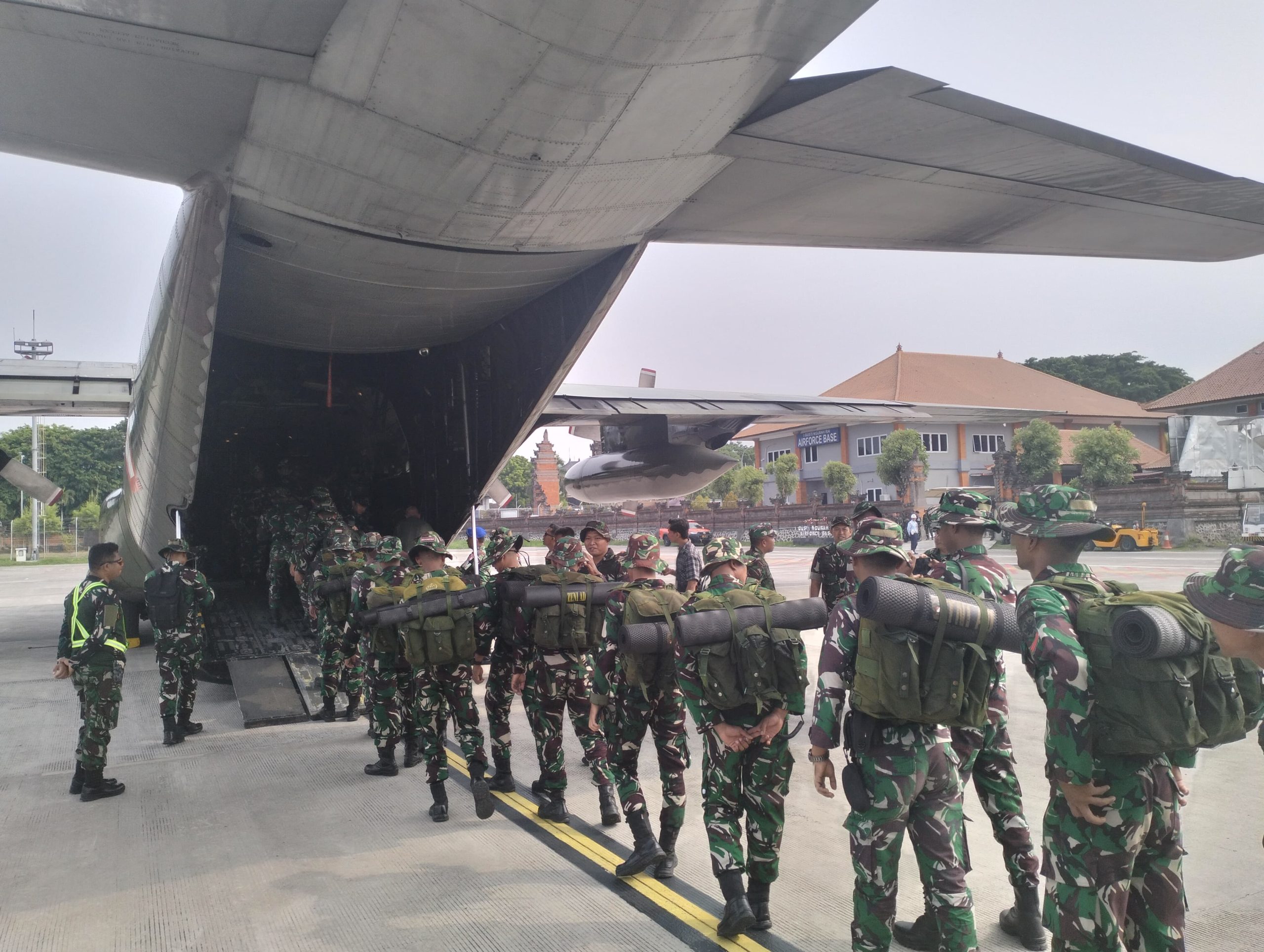 Pergeseran pasukan (Serpas) dilakukan pada Rabu (27/11/2024) melalui jalur udara dan laut. Dari Lanud Ngurah Rai, pasukan diberangkatkan menggunakan Pesawat Hercules TNI AU dengan Apel Pemberangkatan dipimpin oleh Kazidam IX/Udayana, Kolonel Czi Adang Purnama di Base Ops Lanud Ngurah Rai. Sementara itu, pemberangkatan dari Bandara Bizam (NTB) dipimpin oleh Dandenzibang II/NTB menggunakan Pesawat Cassa TNI AU.