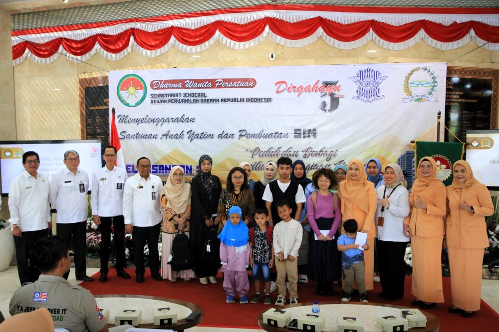 Dalam sambutannya, Sekretaris Jenderal DPD RI Rahman Hadi mengapresiasi kegiatan santunan anak yatim dan memfasilitasi pembuatan SIM yang digalang oleh DWP Setjen DPD RI.