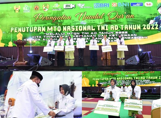 Lomba MTQ Nasional TNI AD 2022 yang dilaksanakan di Mabesad, Jakarta diikuti oleh peserta dari Kotama, Balakpus TNI AD dan umum se-Indonesia tersebut dengan materi lomba yaitu Tilawah yang dibagi menjadi empat kategori diantaranya, kategori putra terdiri dari prajurit dan PNS di lingkungan TNI AD, kategori putri terdiri dari Kowad, Persit dan PNS di lingkungan TNI AD, kategori putra dan kategori putri dari masyarakat umum