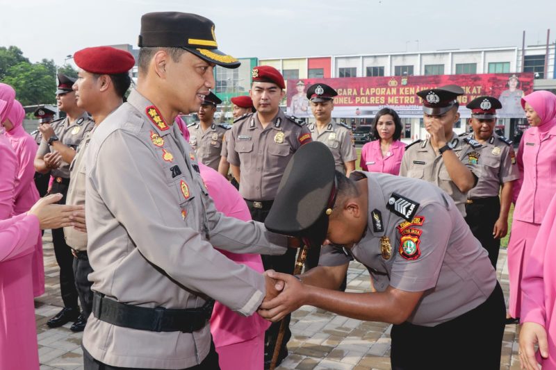 TANGERANG- Kapolres Metro Tangerang Kota, Komisaris Besar Polisi Zain Dwi Nugroho memimpin upacara kenaikan pangkat periode 1 Juli 2024 diikuti oleh sebanyak 283 personel Polres Metro Tangerang Kota, Polda Metro Jaya, Selasa (2/7/2024).