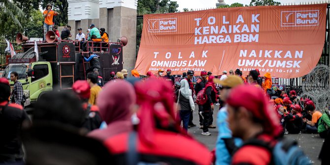 Aksi Buruh Tolak Kenaikan BBM di Depan Gedung DPR. (Foto: Dok.Liputan6.com/Faizal Fanani)
