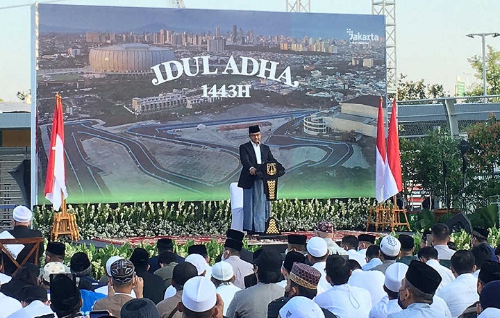 “Atas nama pemerintah Provinsi DKI Jakarta mengucapkan terima kasih kepada saudara-saudara yang memilih hadir di tempat ini untuk melaksanakan salat Idul Adha di Jakarta,” kata Anies dalam sambutannya.