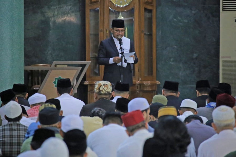 Kota Tangerang – Wali Kota Tangerang, H. Sachrudin, didampingi wakilnya, H. Maryono Hasan, hadir melaksanakan Salat Idulfitri 1446 Hijriah bersama Wakil Menteri Kesehatan Republik Indonesia (Wamenkes) RI, Dante Saksono Harbuwono, di Masjid Raya Al-A’zhom Kota Tangerang, Senin, (31/03/2025).