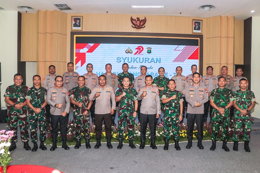 Acara syukuran Hari Bhayangkara ke-79 itu ditutup doa bersama dan pemotongan tumpeng dan kue ulang tahun dan dilanjutkan dengan sesi foto bersama sebagai simbol kebersamaan dan soliditas antara dua institusi penjaga keamanan negara itu.