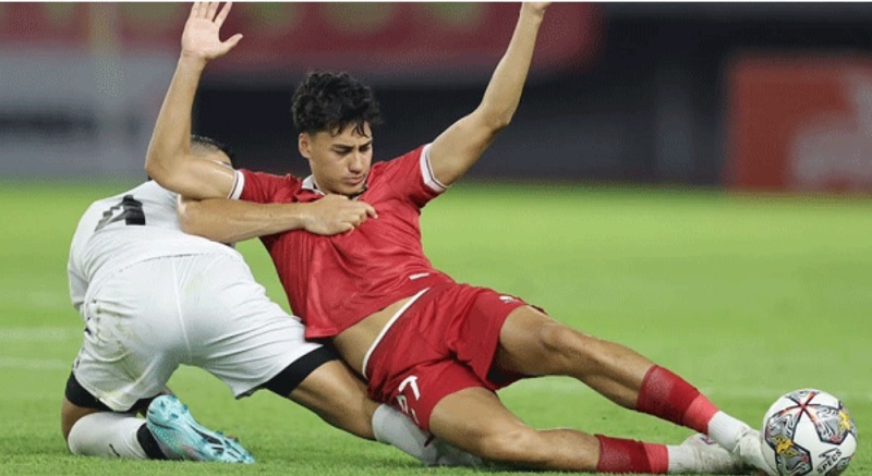 Rafael Struijk gagal mencetak gol untuk Timnas Indonesia saat melawan Palestina di Surabaya, Rabu (14/6) malam. (Foto: istimewa)