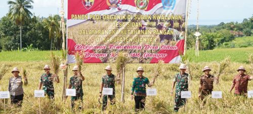 “Pemeritahan Desa Sidan yang bekerjasama dengan TNI AD khususnya Kodim 1616/Gianyar memperluas penggunaan padi organik terus bergulir sampai dengan saat ini, panen bersama di Subak Kwalonan ini dengan jenis tanam padi Inpari 32 (Inbrida Padi Sawah Irigasi) dengan luas lahan panen 9 Ha dan hasil panen padi 7,48 ton perhektar”, ujarnya.