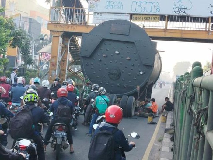truk tangki tersangkut jpo