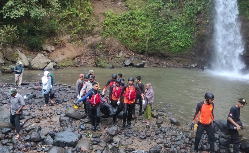 “Dari tadi pagi kita melakukan penyelaman dari area LKP kemudian ada tim yang menyisir langsung menemukan korban dalam posisi ada di sekitar dasar air terjun,” ujarnya.