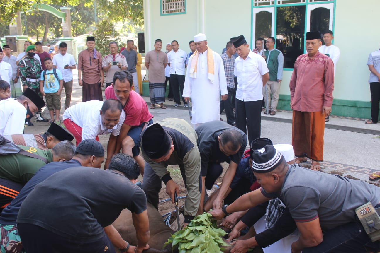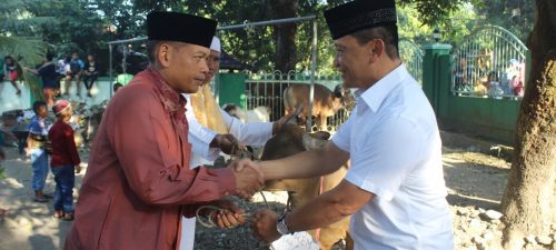 MATARAM – Danrem 162/WB Brigjen TNI Sudarwo Aris Nurcahyo, S.Sos., M.M., menyerahkan bantuan hewan kurban kepada panitia kurban di Hari Raya Idul Adha 1443 H. Penyerahan hewan kurban dilakukan di Masjid As-Syuhada Asrama Militer Gebang Mataram yang berlokasi di Kelurahan Sapta Marga, Kecamatan Cakranegara Kota Mataram, pada Minggu (10/7/2022).